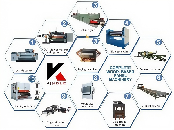 The plywood production line is an integrated equipment for plywood production, covering log rounding, peeling, veneer drying and sorting, gluing, assembly, hot pressing, and the final trimming, sanding and grading processes, completing the transformation from logs to finished plywood in one stop.